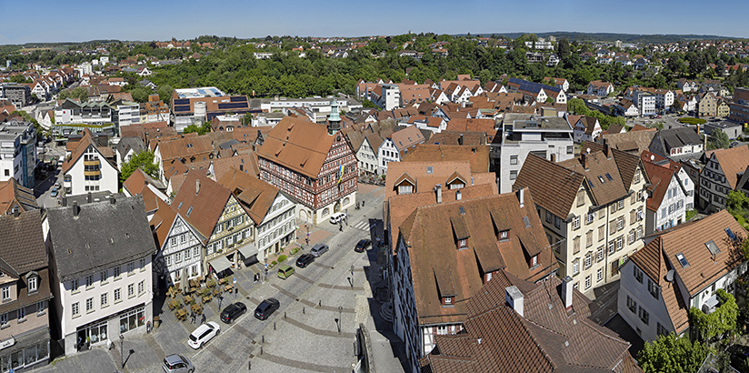 1. Juli 2021 Blick auf die Backnanger Innenstadt vom Stadtturm aus